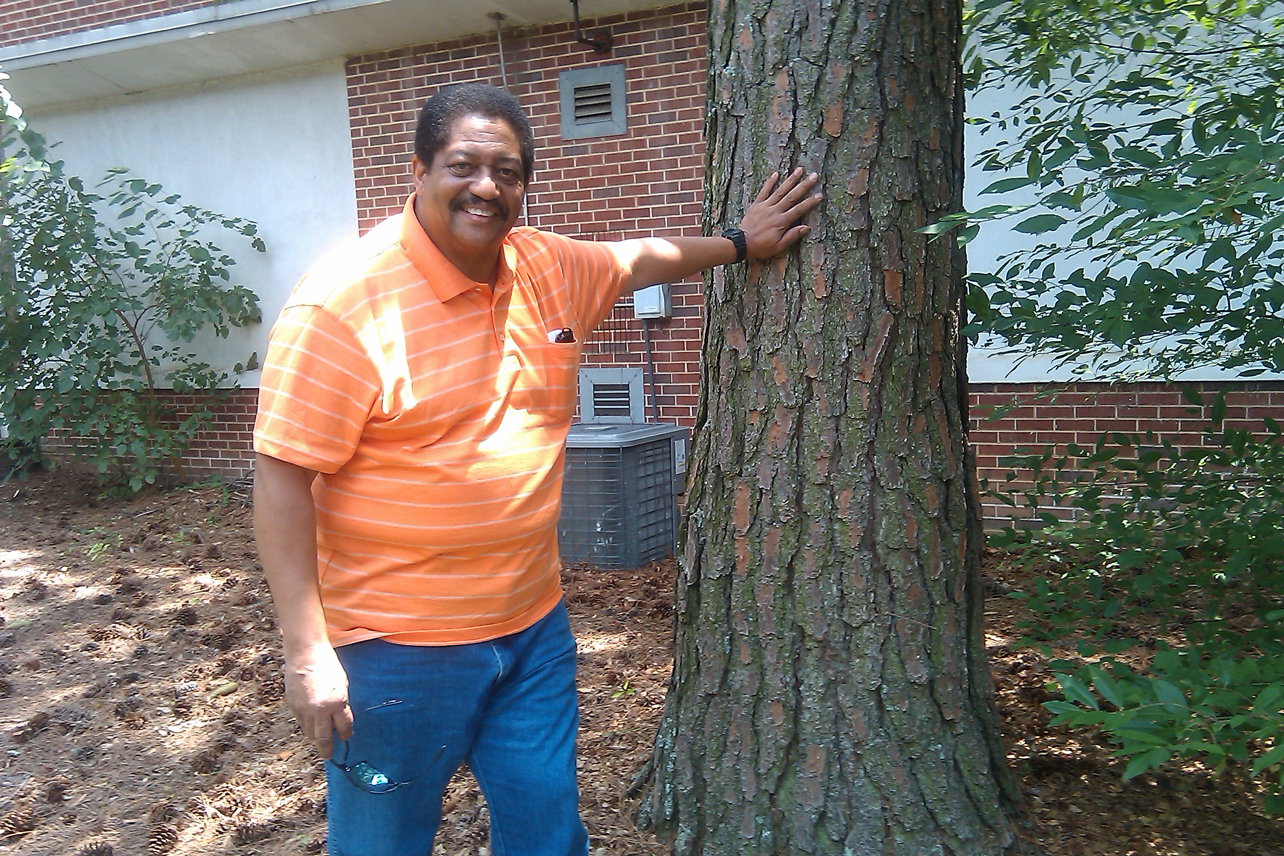 Decatur Active Living has moved to the Beacon Center located behind the Decatur Police Department. On yesterday we had a special guest to visit our office. Bill Harris, a Decatur native attended shcool at the Beacon Center when the school served the African American population. He asked could he see the tree that he planted in the seventh grade and walked to the courtyard. Mr. Harris pointed out the tree he planted as a child and shared many elementary school memories . He reflected on the school that had no air conditioning and remembered playing in the band. Pictured below is Mr. Harris and the pine tree he remembered pulling out of a bucket. Bill’s teacher stated that the tree will grow just as you will grow.